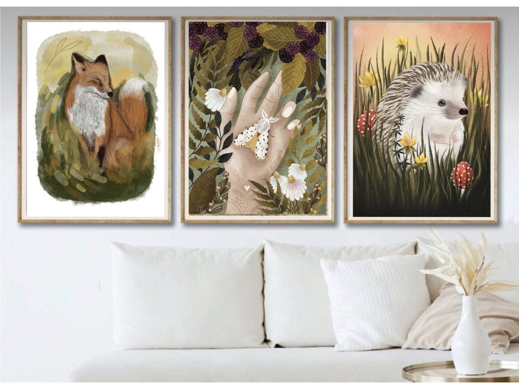 Séria Z lesa vyčaruje vo Vašom domove pokojnú atmosféru. Jej súčasťou je ilustrácia Jesenná líška, print Černicová můŮrka - plná černicových kríkov a príhovorov k malému nočnému motýľovi. Ježko je úplný nováčik z poslednej kolekcie a krásne túto sériu doplňuje spolu so západom slnka v pozadí :)